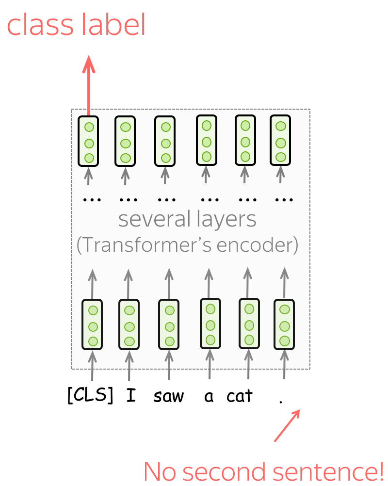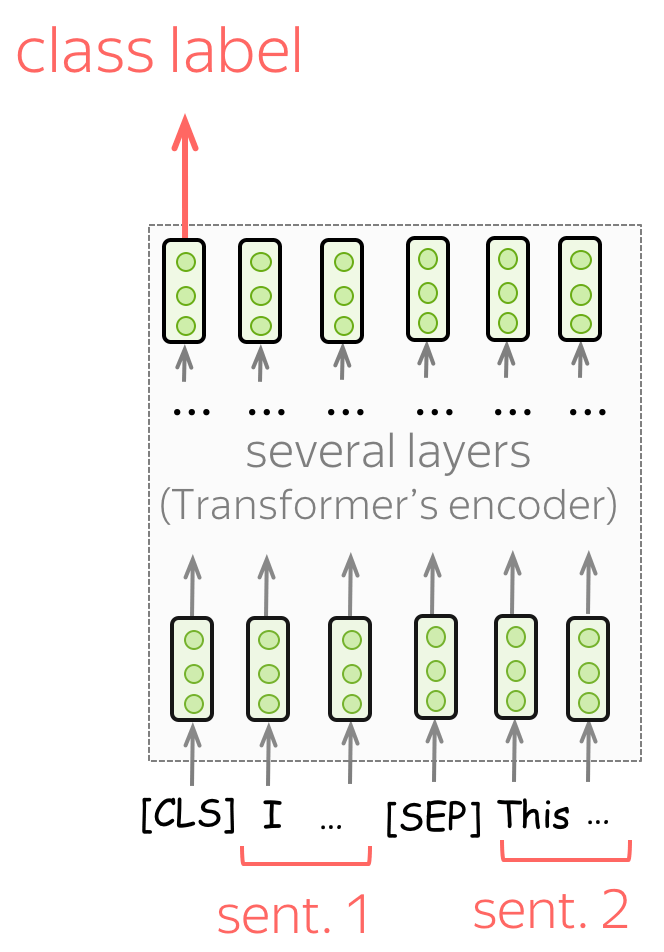 [CLS] 토큰의 최종 표현에서 레이블을 예측한다.