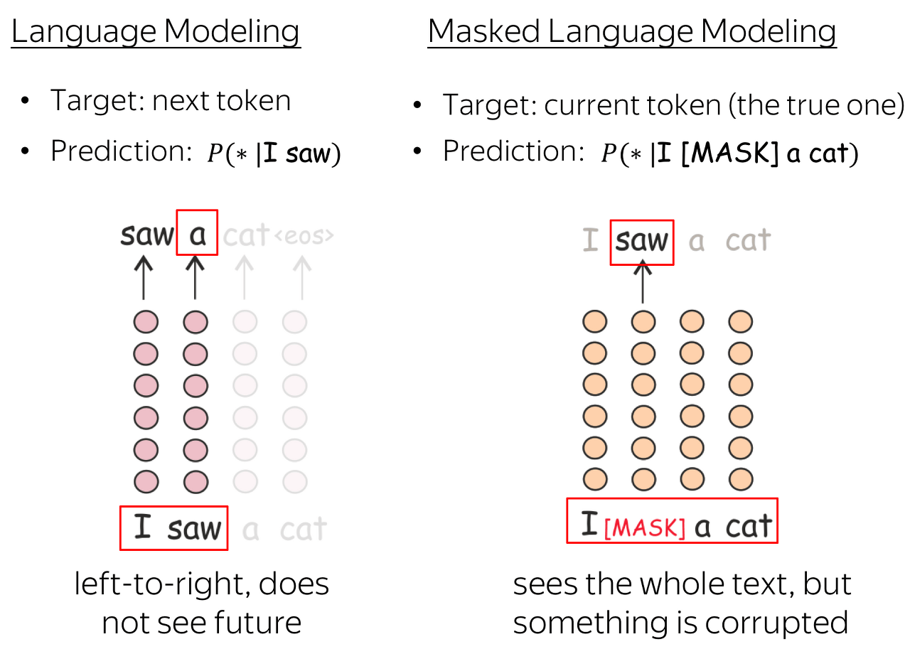 이러한 방식은 기존의 left-to-right 구조와는 다르게 양쪽 문맥을 모두 학습할 수 있도록 한다 (양방향성)