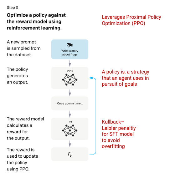 Step2에서 개발된 Reward Model을 기반으로, Prompt와 Output에 대한 Scaler Reward Value가 결정되게 되고,