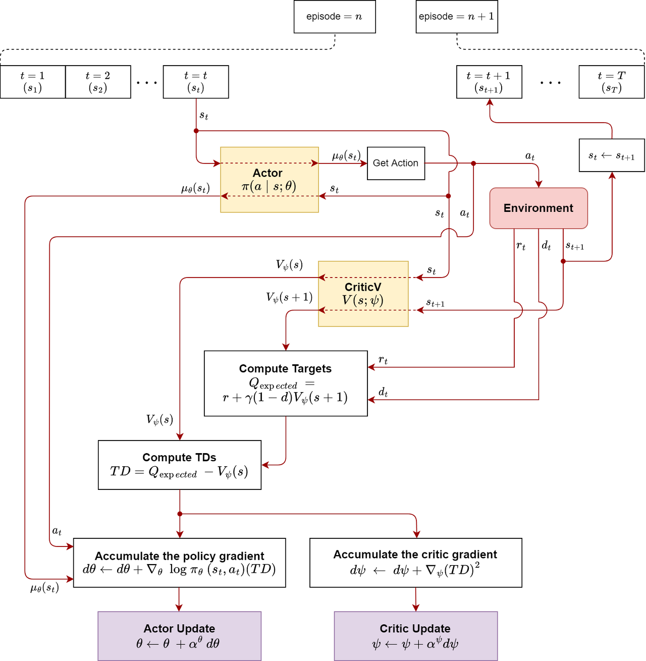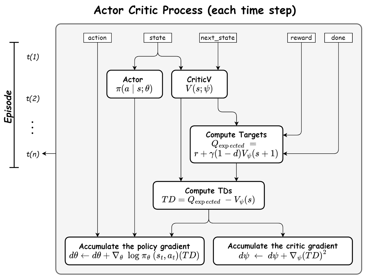 전체적인 구조는 기본 Actor-Critic과 유사하지만, 데이터를 온라인(즉, 순차적으로 혹은 실시간으로)으로 수집하고 처리한다는 점이 다르다.