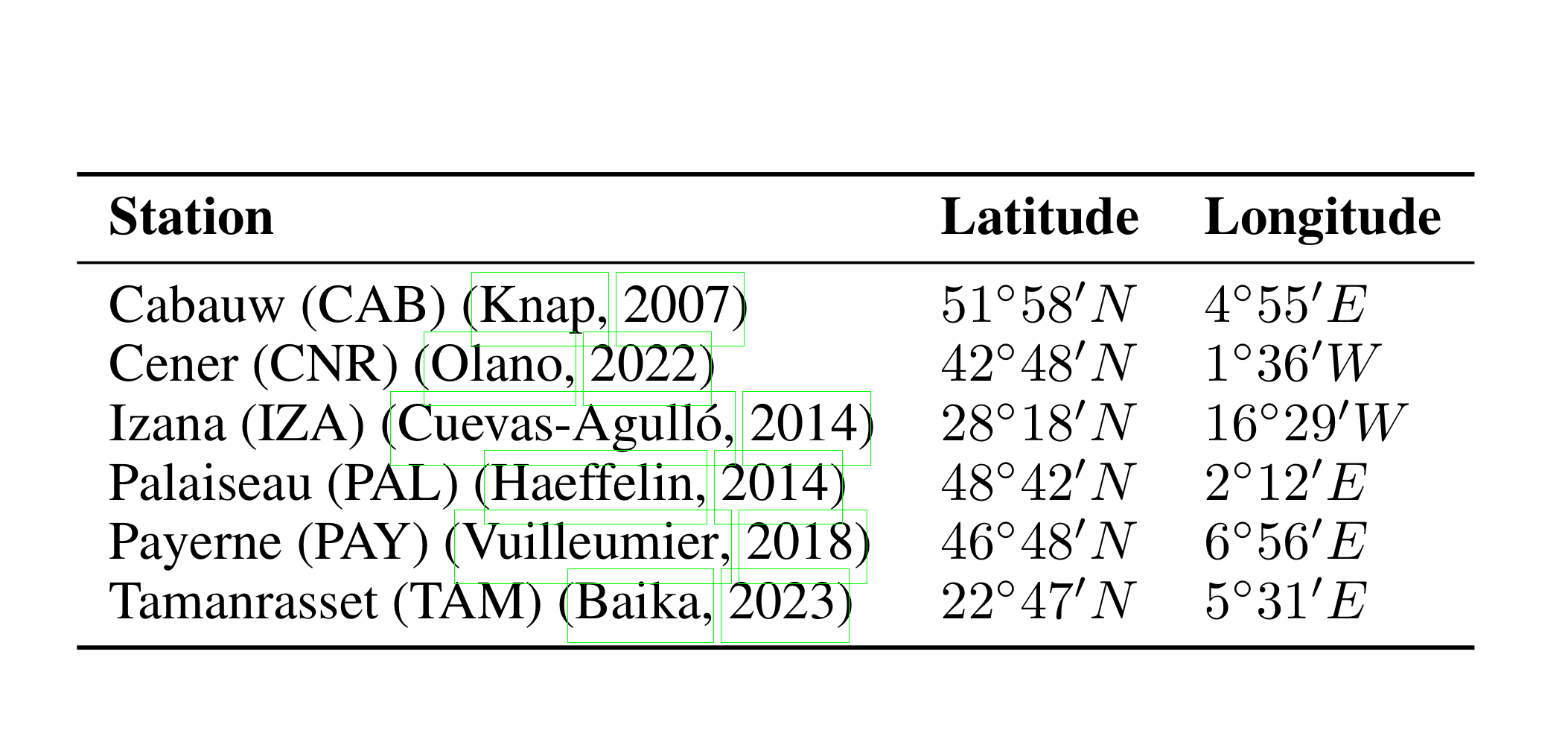 논문에서 사용한 각 관측소의 지리적 좌표와 고도 정보를 정리한 내용