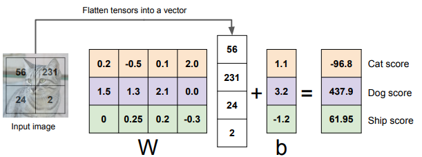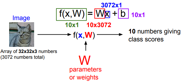 Image(x) = 3072x1 array즉 여기서 control 할 수 있는 대상은 W뿐이고, W의 차원을 우리가 맞춰줘야 한다.