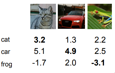 scores vector : $s = f(x_i;W)$