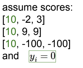 Q: What is the softmax loss and the SVM loss if I double the correct class score from 10 -> 20?