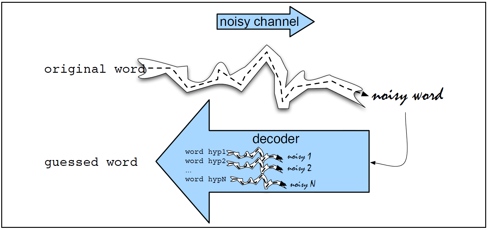 이런 Spelling Error를 교정하는데 가장 널리 사용되는 알고리즘이 Noisy Channel Model이다.